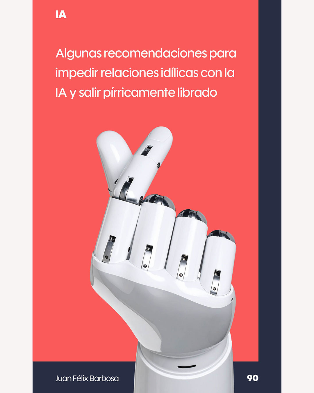 Recomendación final: por si todo lo anterior llegara a fallar, dado que la relación con la IA se ha vuelto más que idílica, conviene pensar que estas plataformas estarán impedidas durante mucho tiempo para sentir, imaginar o simplemente dudar. Además, toda IA deriva de ideologías más que bien definidas y que por lo general al tener programadores humanos, heredarán sus sesgos, valores y creencias. Ya como última consideración y no menos importante, sepamos que detrás de cada IA, además de intereses económicos, también los hay políticos y hasta militares que podrían hacer uso inconveniente de información sensible y personal graciasa esos encuentros idílicos con las IAs.